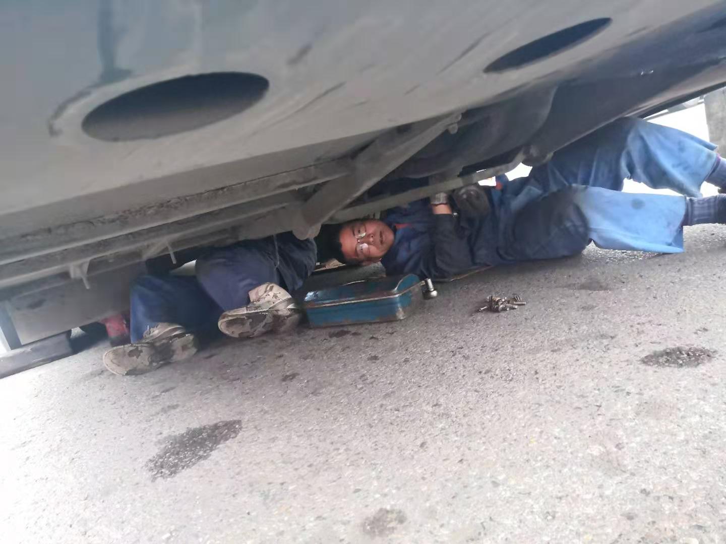 11月21日上午客服總調(diào)親自帶隊(duì),修理廠派出維修精英4人,于11:30抵達(dá)。此時(shí)天空不作美,寒風(fēng)刺骨摻和冰冷雨水,搶修環(huán)境更為惡劣,為盡快恢復(fù)班次,師傅們顧不上吃飯,便開始搶修工作,從變速箱附件拆卸、安裝,變速箱落地、吊裝,分離軸承更換、潤滑,每個(gè)步驟環(huán)節(jié)都井然有序,連續(xù)作業(yè)3小時(shí)后,于下午14:30搶修成功。此時(shí),師傅們才放心的吃了飯,穿著濕透的工作服返回?fù)P州。他們在平凡的工作崗位上,用辛勤的汗水,展現(xiàn)了揚(yáng)汽人默默奉獻(xiàn)的精神。