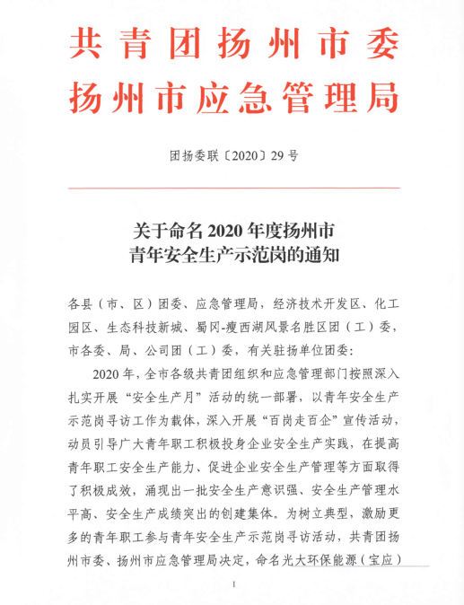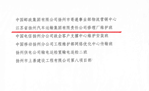 2020年,揚(yáng)汽集團(tuán)修理廠維護(hù)班切實(shí)落實(shí)“安全第一、服務(wù)第一、質(zhì)量第一”總目標(biāo),以突出的成績(jī),被共青團(tuán)揚(yáng)州市委與揚(yáng)州市應(yīng)急管理局授予“揚(yáng)州市青年安全生產(chǎn)示范崗”稱號(hào)。