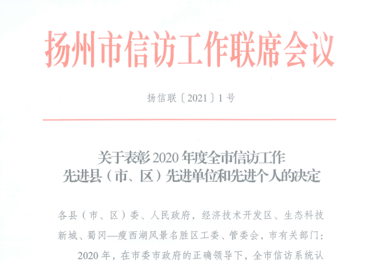 近日,揚(yáng)州市信訪工作聯(lián)席會議印發(fā)《關(guān)于表彰2020年度全市信訪工作先進(jìn)縣(市、區(qū))先進(jìn)單位和先進(jìn)個人的決定》,揚(yáng)汽集團(tuán)汽車東站黨支部書記、副站長張彤獲信訪工作先進(jìn)個人。