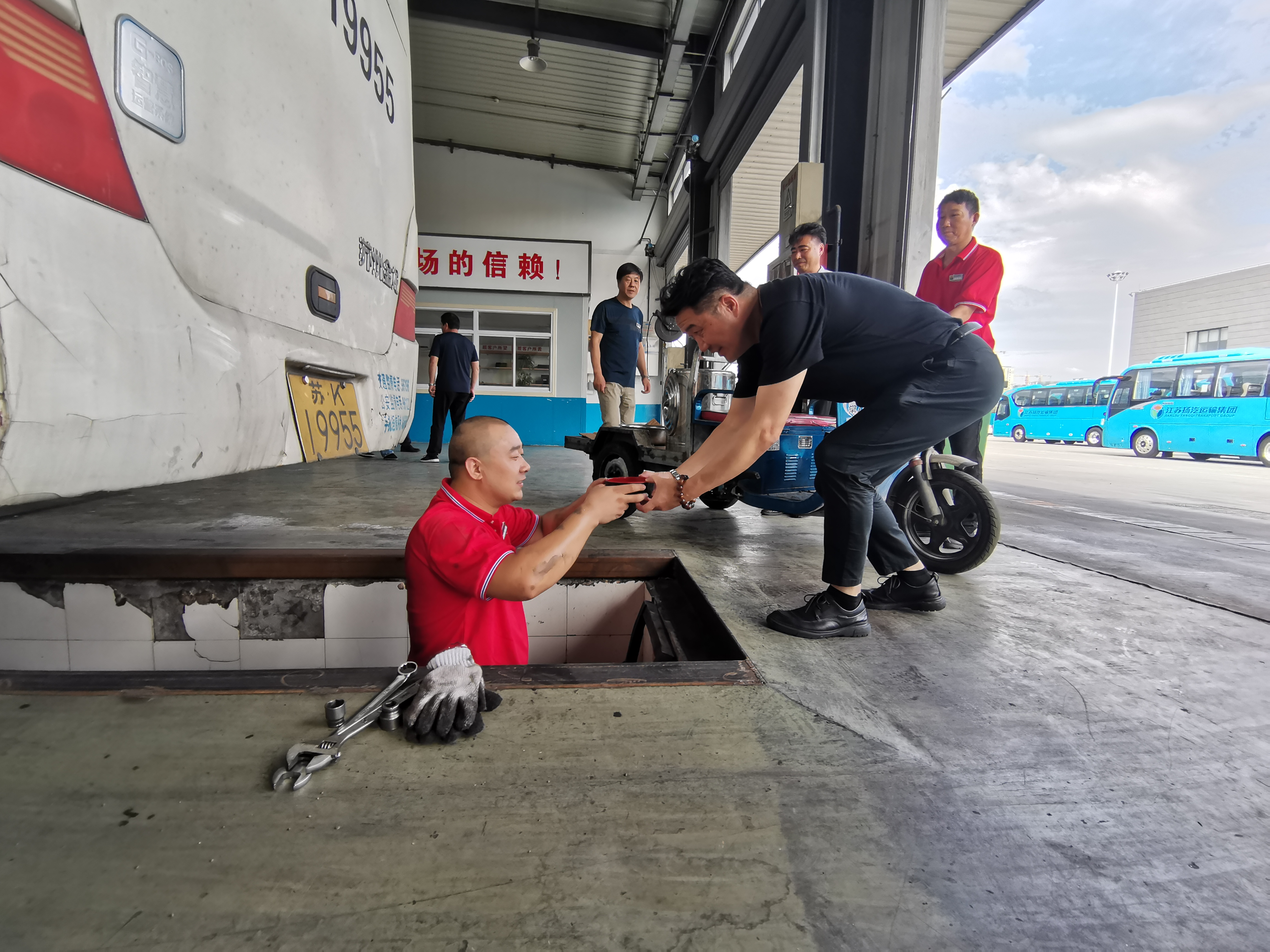 近日,揚城入伏以來,室外氣溫高達37℃。修理廠生產(chǎn)一線挑戰(zhàn)炎熱,作業(yè)于酷暑環(huán)境中,為集團公司車輛維修保班保點。