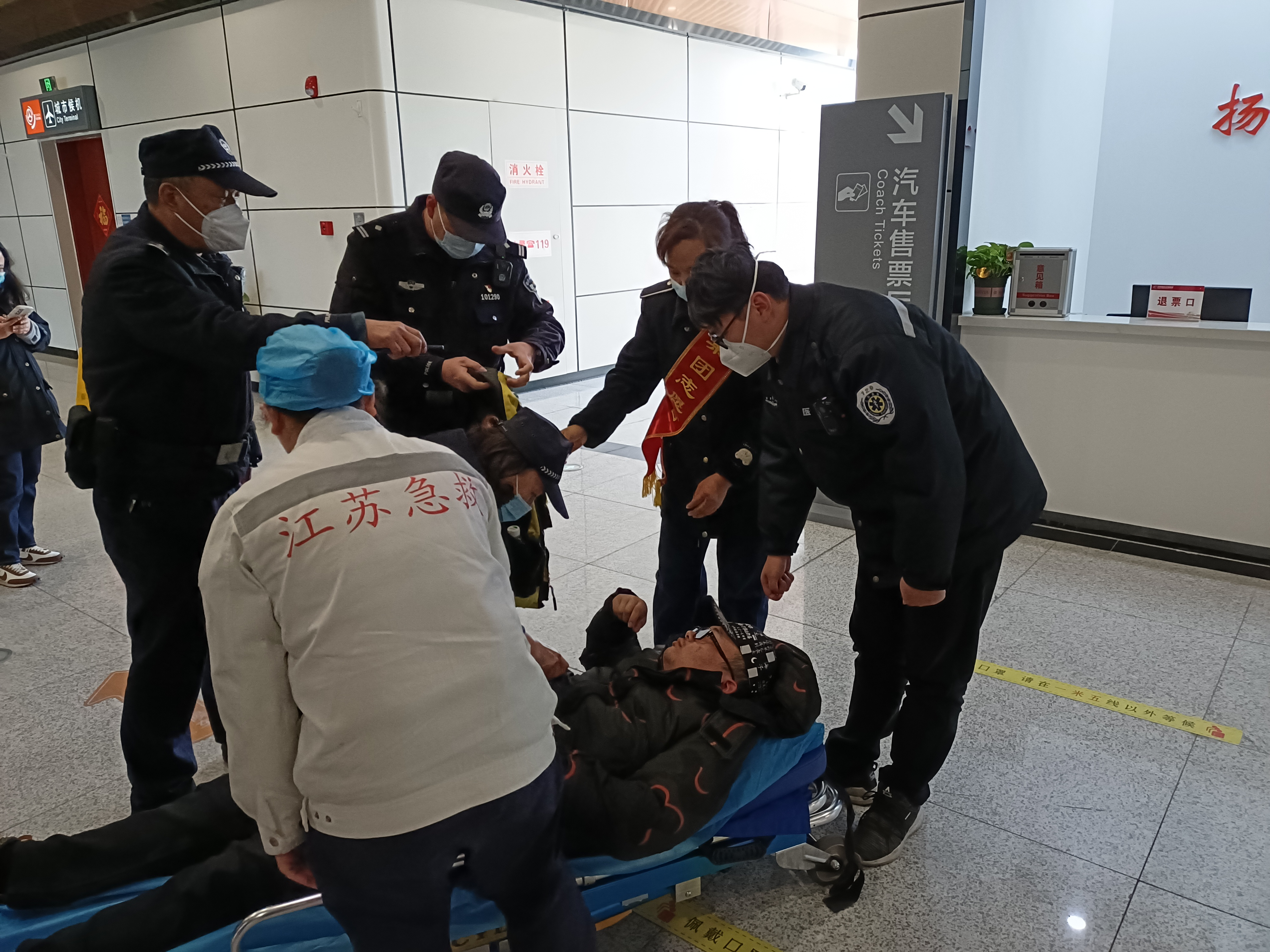 2月16日下午,揚州東樞紐汽車站售票處,一名正在購票的旅客突發(fā)癲癇,暈倒在地,現(xiàn)場工作人員及志愿者立即進行了救助。